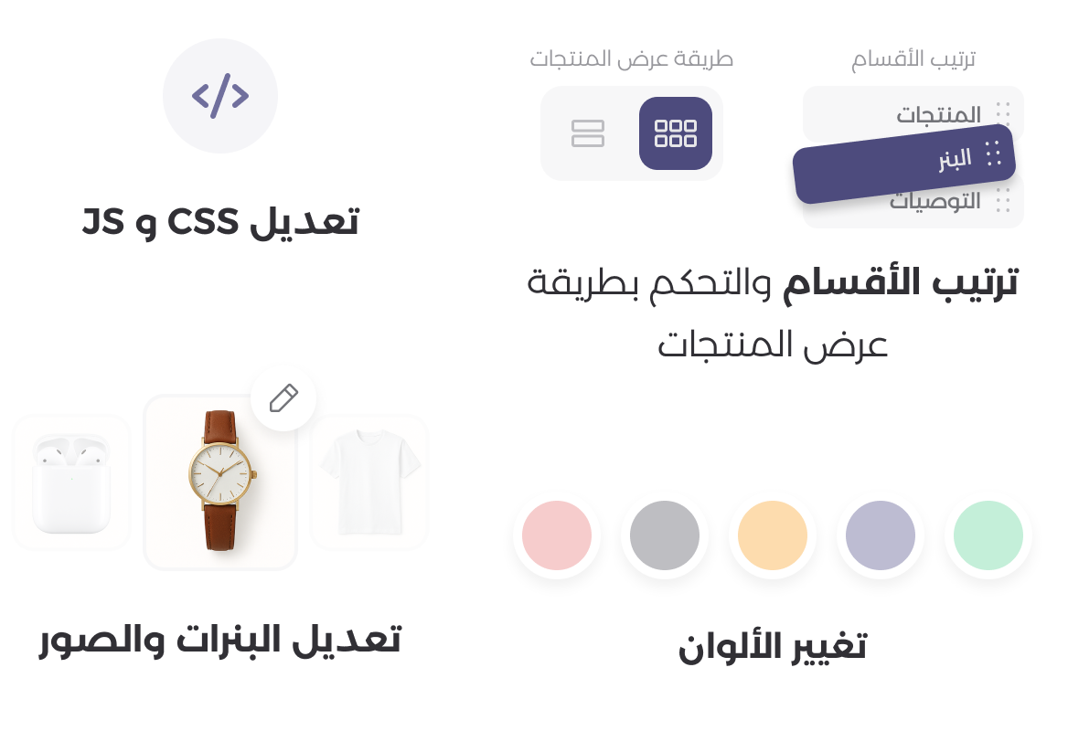غيّر الألوان، البنرات، الأقسام وطريقة العرض... بدون خبرة تصميم.